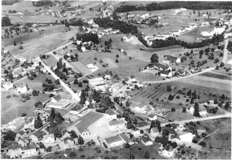 Auf einer alten Foto aus dem Jahr ca. 1965 kann man sehen, wie es dazumal in Hombrechtikon ausgesehen hat. Finden Sie den Ort, wo die Liegenschaft Breitlen heute steht?